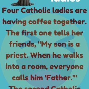 Four Catholic ladies are having coffee together, discussing how important their children are. The first one tells her friends, “My son is a priest. When he walks…