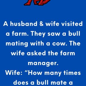 A husband & wife visited a farm. They saw a bull mating with a cow. The wife asked the farm manager. Wife: “How many times does a…