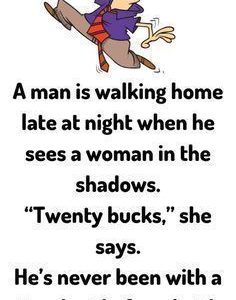 A man is walking home late at night when he sees a woman in the shadows. “Twenty bucks” she says. He’d never been with a hooker before,…